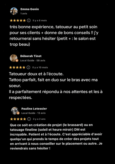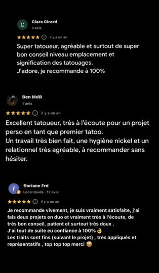 Tatoueur depuis mai 2023, je développe une approche du tatouage guidée par l’exigence du détail et la recherche d’équilibre.